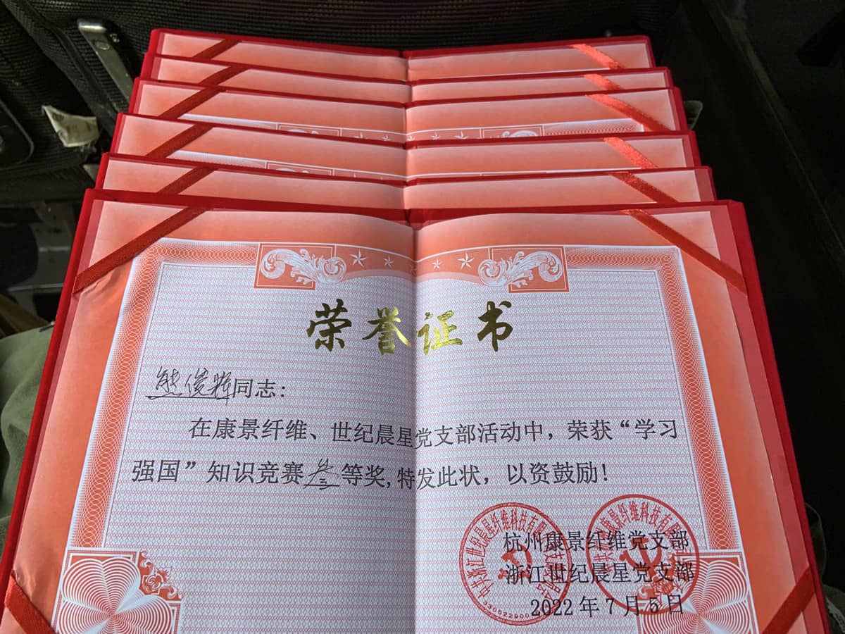 Pe 5 iulie, filiala de partid a lui Zhejiang Century Morningstar Fiber Technology Co., Ltd. și filiala de partid a Hangzhou Kangjing Fiber au mers la Shangrao, provincia Jiangxi, pentru a vizita locul memorial al lagărului de concentrare Shangrao, produs al incidentului din Anhui de Sud. . Pe drum, în autobuz s-a desfășurat o competiție comună la scară mică pentru a învăța cunoștințele unei țări puternice. Acordarea certificatelor de onoare și a bonusurilor are ca scop consolidarea cunoștințelor teoretice și îmbunătățirea calității membrilor de partid!
